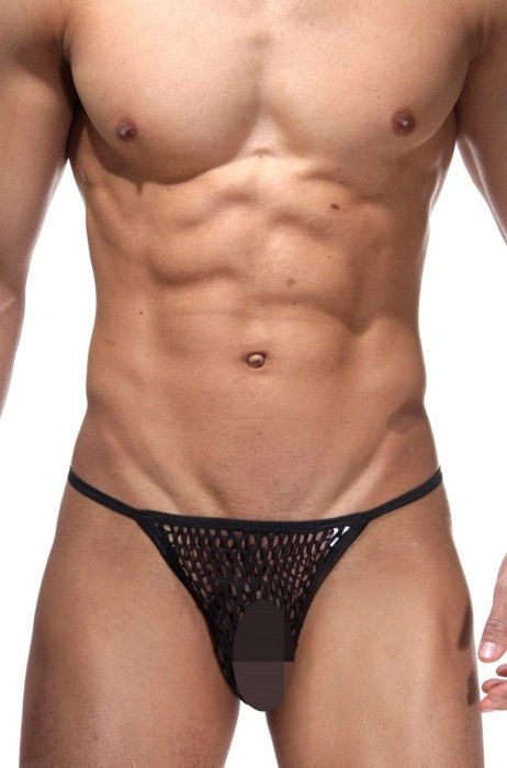 Мужские стринги из эластичной и мягкой ткани в крупную сетку. Отлично сядут на любую фигуру и станут прекрасным дополнением к любому образу.
