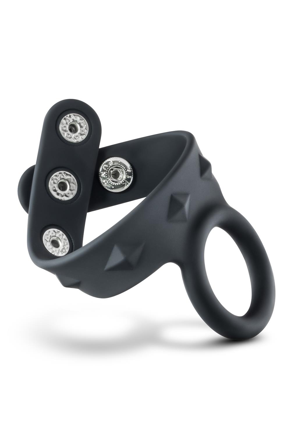 Черное эрекционное кольцо с подхватом мошонки на кнопках VS6.