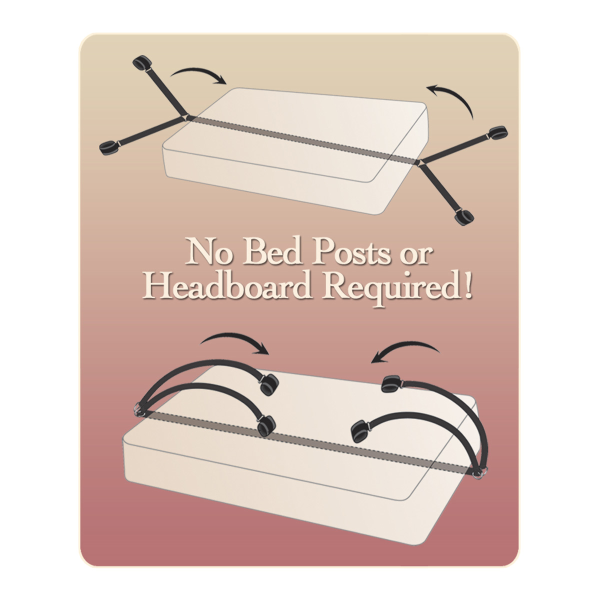 Благодаря этим наматрасным фиксаторам ваша кровать превратится в поле сексуального боя! Просто положите основание под матрас так, чтобы наножники и наручники оказались снаружи. Сладкий захват, полная темнота (маска на глаза в комплекте) и чувственные (хоть порой и сердитые) ласки партнёра позволят вам прочувствовать всю прелесть БДСМ-игр. В комплекте: 4 нейлоновых захвата для рук и ног, вельветовые наручники и наножники, маска на глаза.
