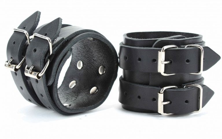 Черные кожаные оковы с двумя пряжками.