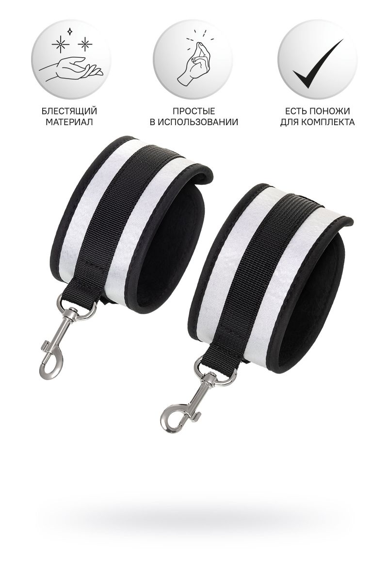 Наручники — классический предмет для игры в подчинение, обязательный для начинающих и опытных поклонников БДСМ. Блестящий во всех смыслах аксессуар для ограничения свободы: сатиновый материал поблескивает, когда на него падает свет. Необычное сочетание серебристого и черного, совсем нехарактерное для классического исполнения аксессуаров в стиле БДСМ, придает изюминку и новизну. Подчиненный с таким аксессуаром выглядит неотразимым. Застежка велкро позволяет зафиксировать руки любого размера. Между собой наручники скрепляются карабинами, практически не оставляя свободы действий. Никакого послабления, только полное подчинение своему Доминанту, где бы ни были зафиксированы руки: впереди или за спиной. Используйте дополнительно цепочку для расширенных возможностей фиксации положения рук. Начните игру в подчинение с этим аксессуаром, и вы поймете, как развивать свою чувственность с помощью ограничения свободы одного из партнеров. Ширина - 5,5 см. Длина сцепки - 8 см.