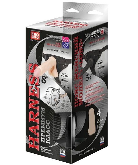 Это вариант самого продвинутого и совершенного поколения поясов для женщин, разработанное с учетом рекомендаций врачей. Комплект состоит из трусиков, двух фаллоимитаторов-насадок и вагинальной пробки. Внутренний фаллоимитатор сделан из атравматичной кибер-кожи на каркасе, передающим стимулирующее воздействие на клитор и вход во влагалище. Эта насадка жестко связана через соединительный стержень с внешним фаллоимитатором, благодаря чему все движения и изменения положения передаются внутрь. Внешний фаллоимитатор, соединенный с внутренним, имеет полужесткую структуру и искривлен таким образом, что полностью имитирует физиологическое положение мужского члена. При такой форме и жесткости можно использовать как для анального, так и вагинального секса. Боковые фастексы после точной подгонки и регулировки по фигуре позволяют расстегивать и вновь надевать страпон, не требуя регуляции в дальнейшем. Мягкая бейка по краям и мягкий, вспененный материал между слоями кожи гарантируют атравматичное использование. Бандаж на пояснице плотно и мягко удерживает всю конструкцию при любых нагрузках. Качественная, синтетическая кожа легко стерилизуется антисептиками и моется бактерицидным мылом. Универсальность стыковочных узлов позволяют использовать абсолютное большинство насадок, продающихся отдельно. Длина телесной насадки - 20 см., рабочая длина - 18 см., диаметр - 4,2 см. Длина черной насадки - 16 см., рабочая длина - 14,5 см., диаметр - 3,5 см. Длина вагинальной пробки - 10,5 см., диаметр - 4 см.
